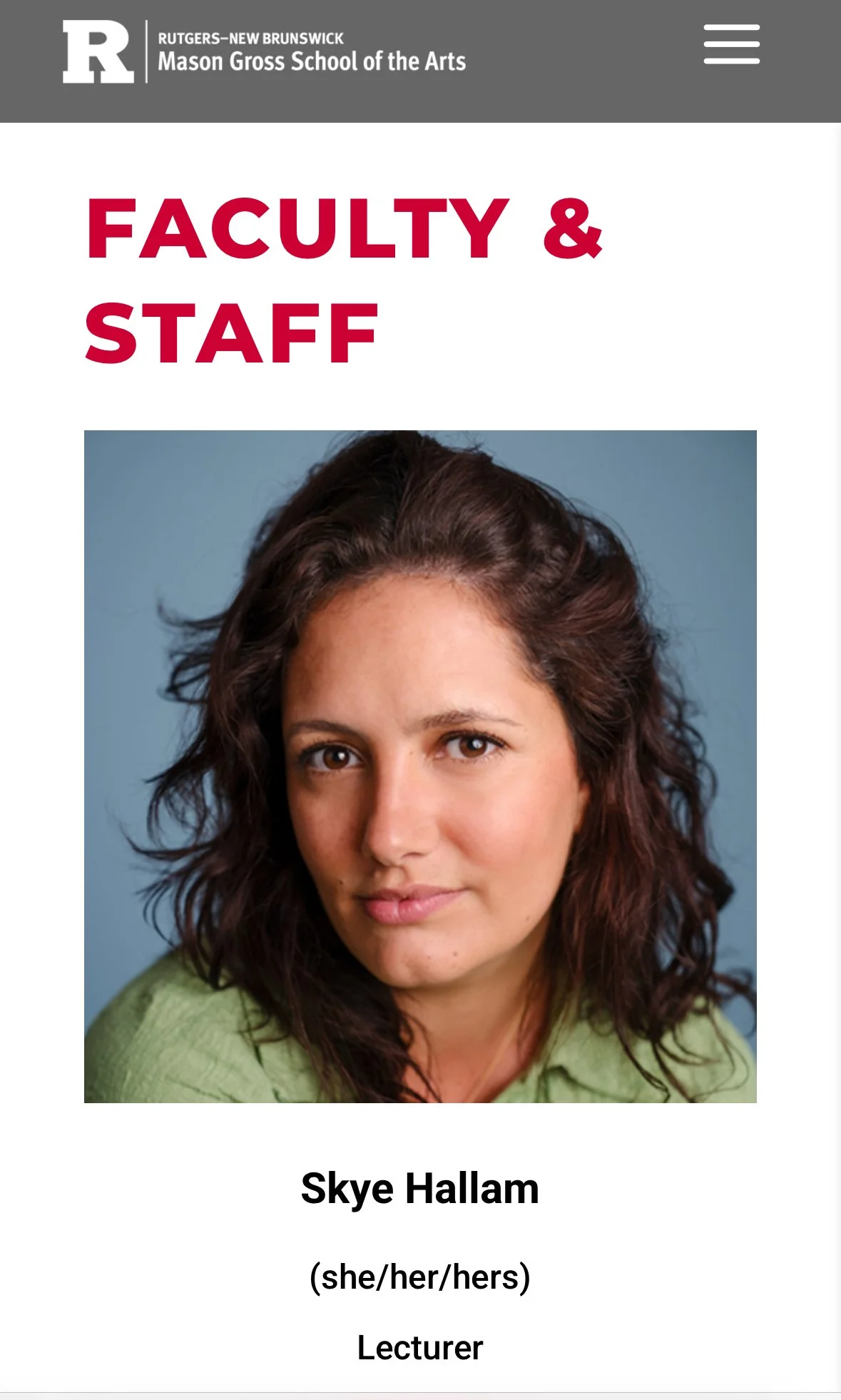 Skye is currently teaching classical text and directing 4th year MFA students from Rutgers University (Mason Gross School of the Arts) at Shakespeare's Globe from Monday until mid January 2026